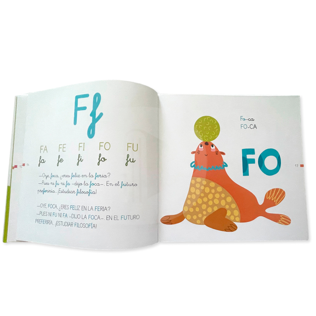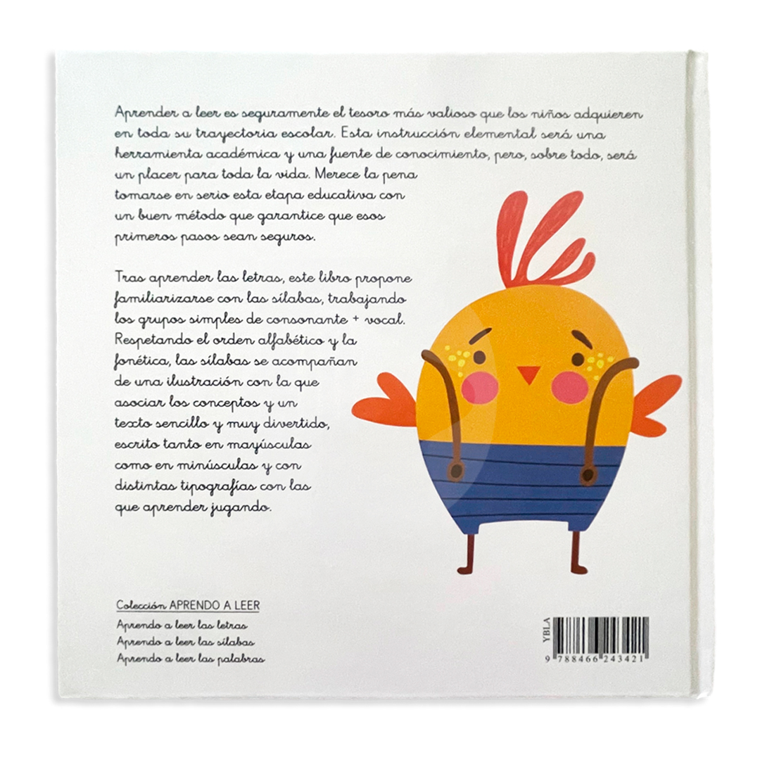 Tras aprender las letras, este libro propone familiarizarse con las sílabas, trabajando los grupos simples de consonante + vocal. Respetando el orden alfabético y la fonética las sílabas se acompañan de una ilustración con la que asociar los conceptos y un texto sencillo y muy divertido, escrito tanto en mayúsculas como en minúsculas y con distintas tipografías con las que aprender jugando.