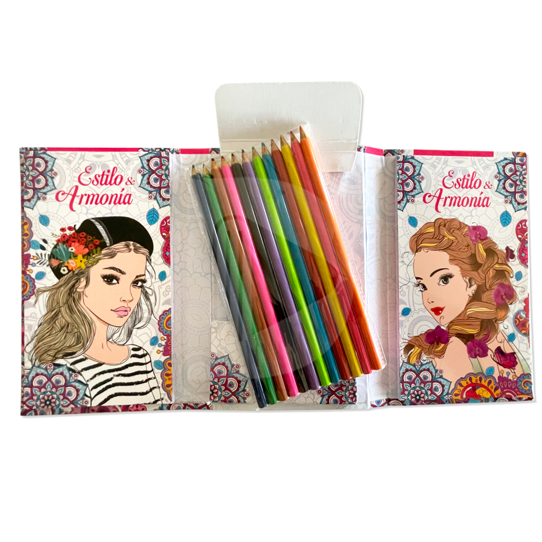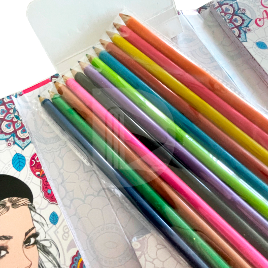 Incluye 12 lápices de colores.