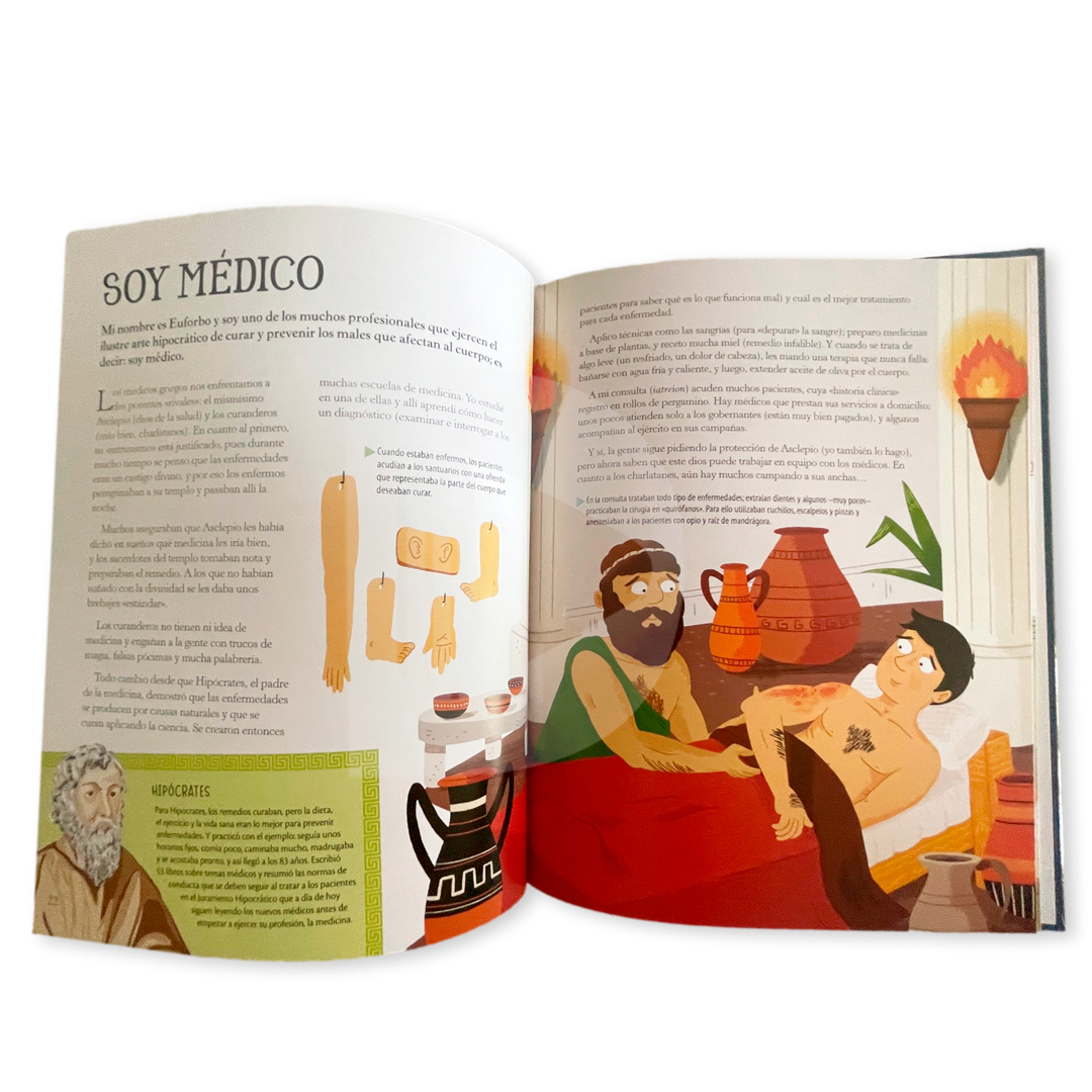 En la antigua Grecia, el ocio era la aspiración máxima de cualquier persona, y los ciudadanos solo trabajaban por necesidad, pues normalmente asistían a la Asamblea o los tribunales y dejaban los trabajos manuales a los metecos o los esclavos. Pero si había que trabajar, el ideal griego de vida era el del campesino, a pesar de ser un oficio durísimo. Además de campesinos, había médicos, soldados, políticos, arquitectos, artesanos o maestros, entre otras muchas ocupaciones.