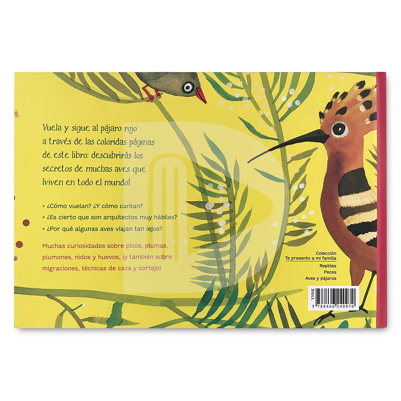 Vuela y sigue al pájaro rojo a través de las coloridas páginas de este libro: ¡descubrirás los secretos de muchas aves que viven en todo el mundo! Además, muchas curiosidades sobre picos, plumas, pulmones, nidos y huevos, y también sobre migraciones, técnicas de caza y cortejo.