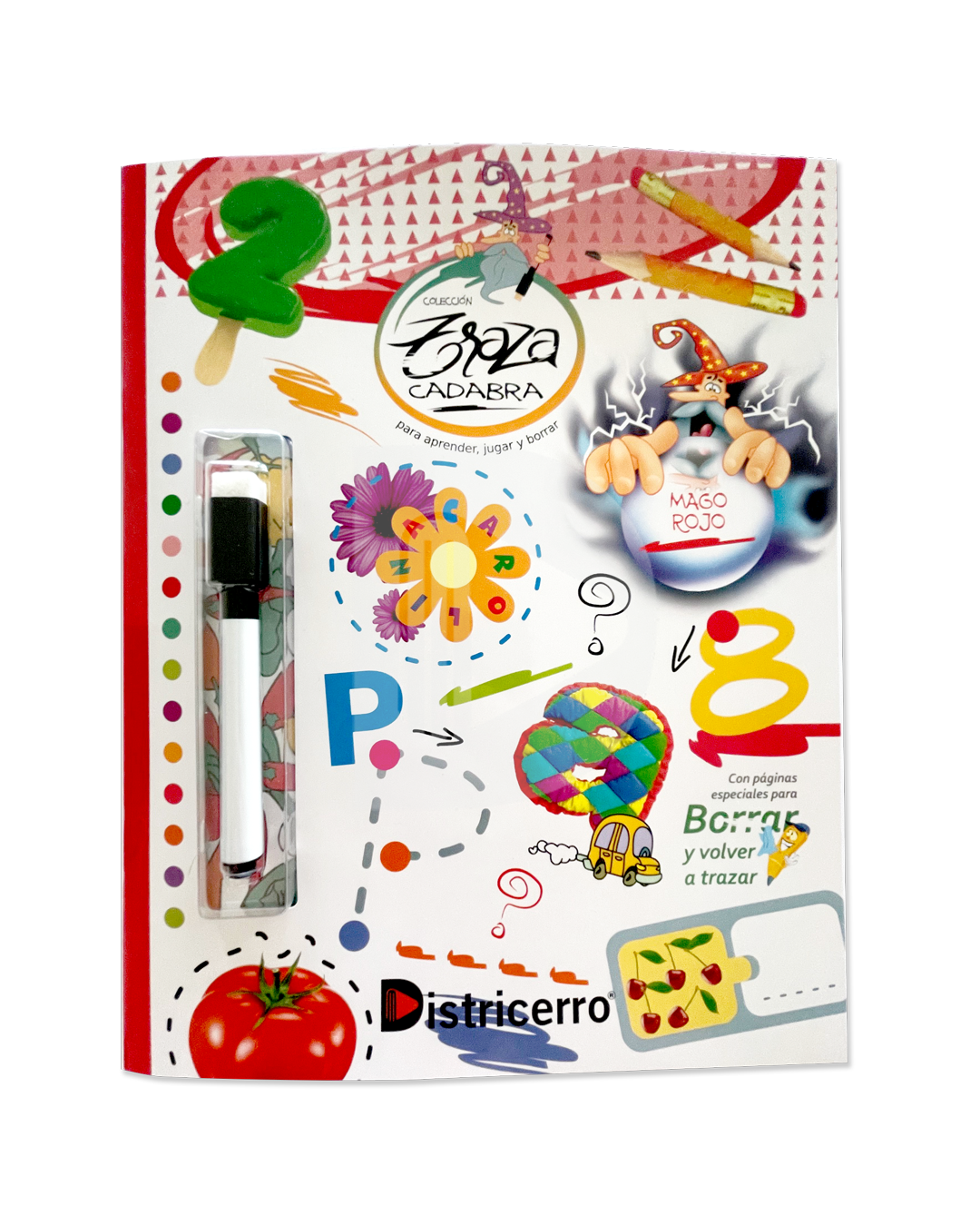 Incluye un marcador mágico que permite escribir y borrar en hojas especiales que incluye el libro.