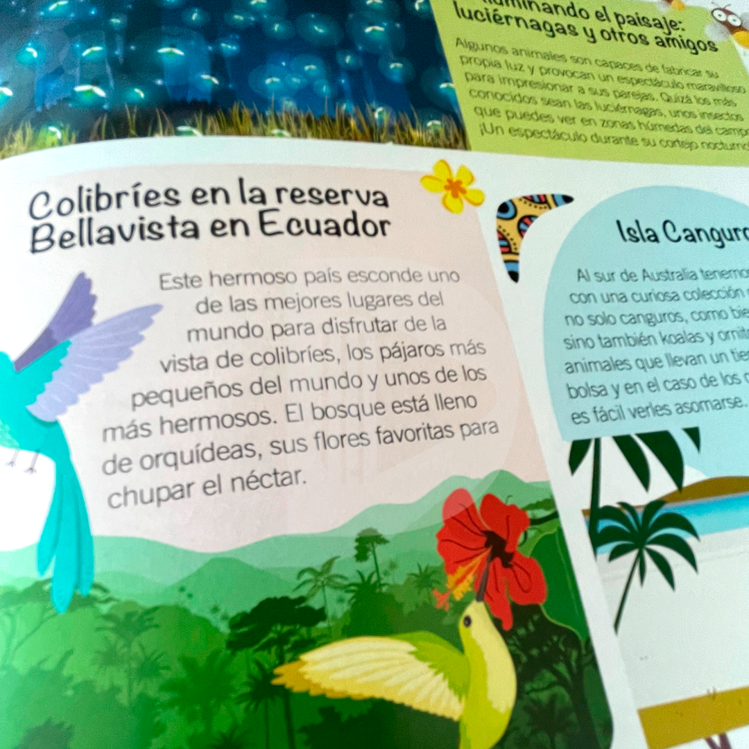 Seguro que eres un amante de la naturaleza y que te encanta viajar, así que esta va a ser tu mochila de papel, imprescindible para moverte de un lugar a otro del mundo sin salir de casa. Con este libro y un poco de imaginación vas a subir las montañas más altas y peligrosas del planeta, a explorar oscuras cuevas, a perderte en desiertos interminables y playas paradisíacas.