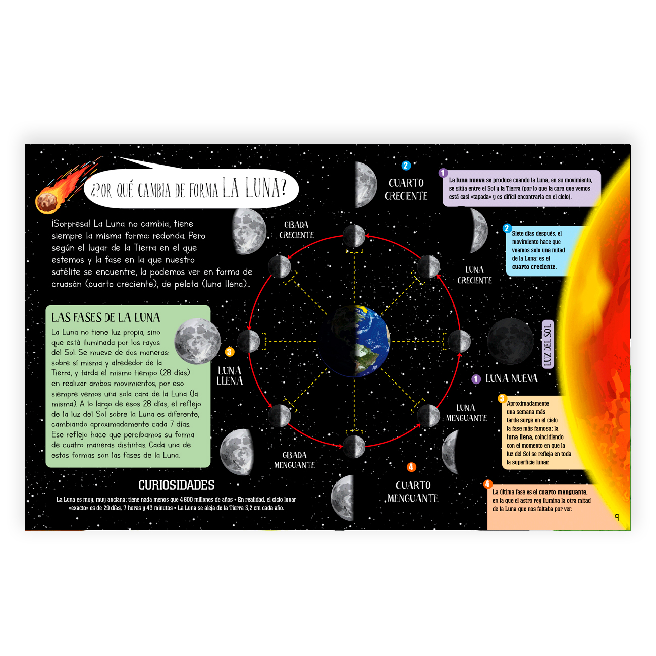 Normalmente, o no sabemos qué responder o les damos una contestación imprecisa para salir del paso… Este libro presenta respuestas directas a sus dudas más comunes, con espectaculares esquemas y atractivos dibujos para que comprendan cómo funciona esa gran esfera azul que es el planeta en el que viven, utilizando un lenguaje cercano fácilmente comprensible para ellos y descubriéndoles un montón de curiosidades y datos que les harán asombrarse y les resultarán amenos y divertidos.