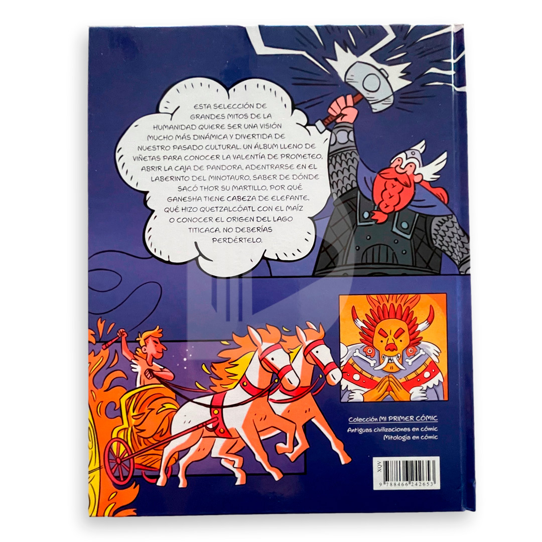 Esta selección de grandes mitos de la humanidad quiere ser una visión mucho más dinámica y divertida de nuestro pasado cultural. Un álbum lleno de viñetas para conocer la valentía de Prometeo, abrir la caja de Pandora, adentrarse en el laberinto del Minotauro, saber dónde sacó Thor su martillo, por qué Ganesha tiene cabeza de elefante, qué hizo Quetzalcoatl con el maíz o conocer el origen del lago Titicaca. No deberías perdértelo.
